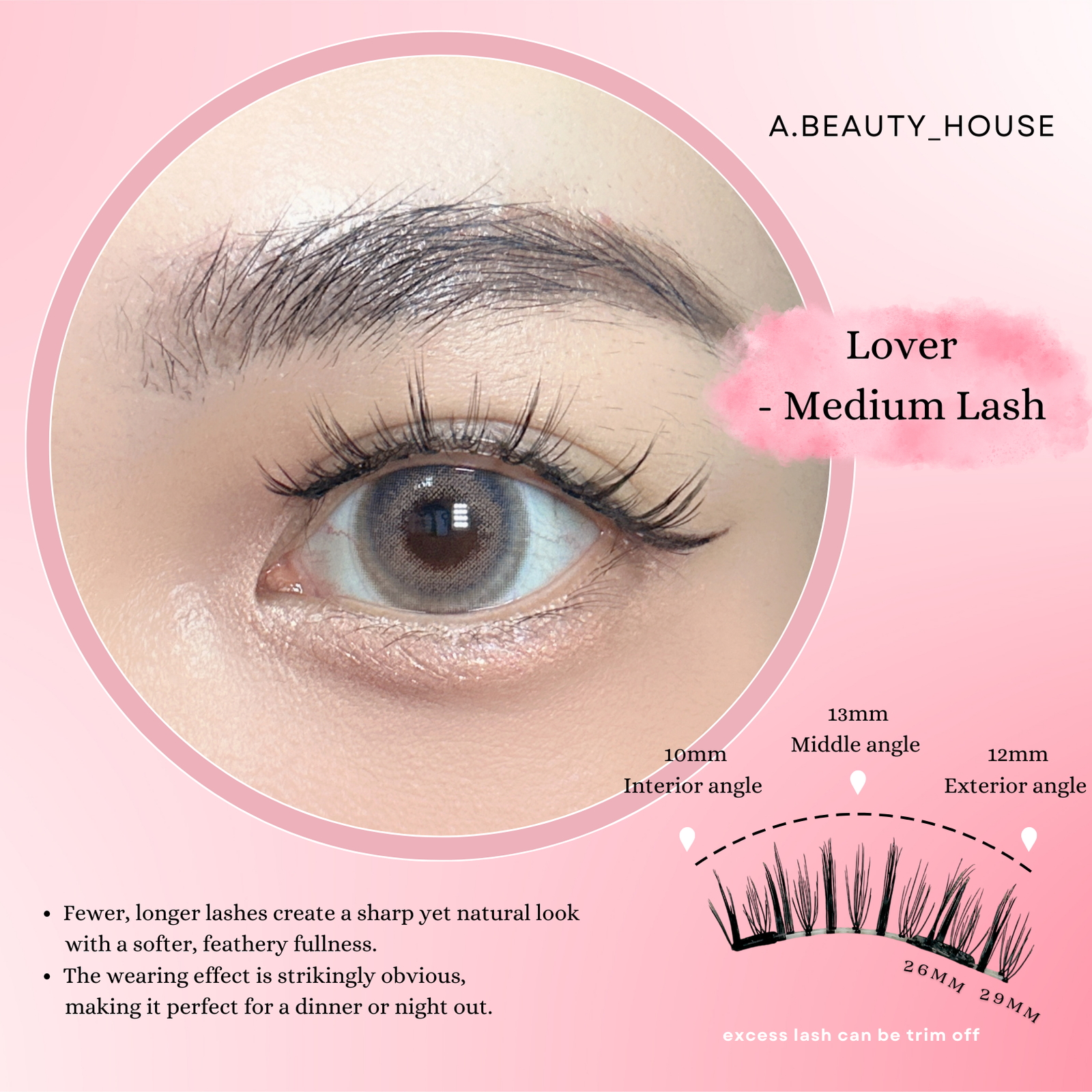 This collection features A.Beauty’s previous-generation magnetic lash design. Made with a firmer lash band and classic hard-magnet technology, these lashes offer a structured look and a strong magnetic grip at a more affordable price.
